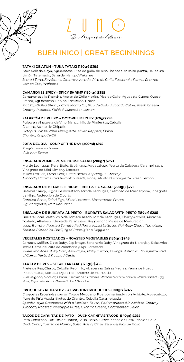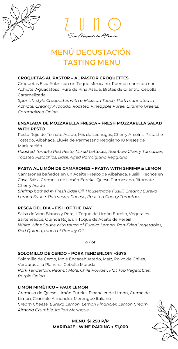 Welcome to Zumo Rooftop Restaurant, where culinary artistry meets stunning views in the heart of San Miguel de Allende. Nestled atop the vibrant streets, this dining gem boasts a menu that harmoniously blends modern interpretations of traditional Mexican cuisine.